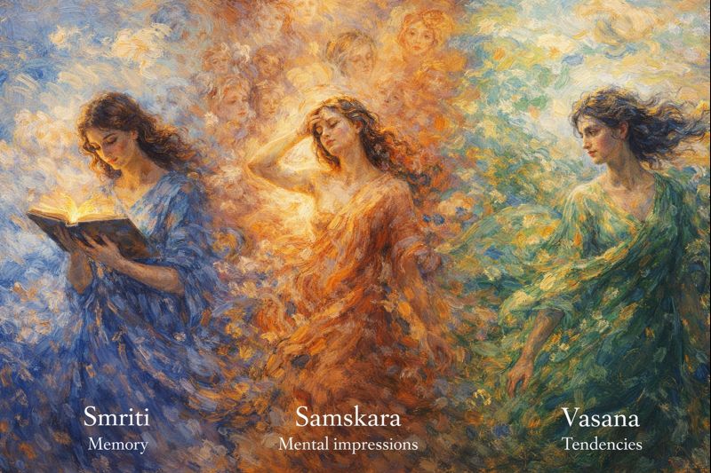 In the Yoga Sutras, Smriti is described as the conscious recollection of the past. It is the “fluctuation of the mind”—the surface-level retrieval of information.